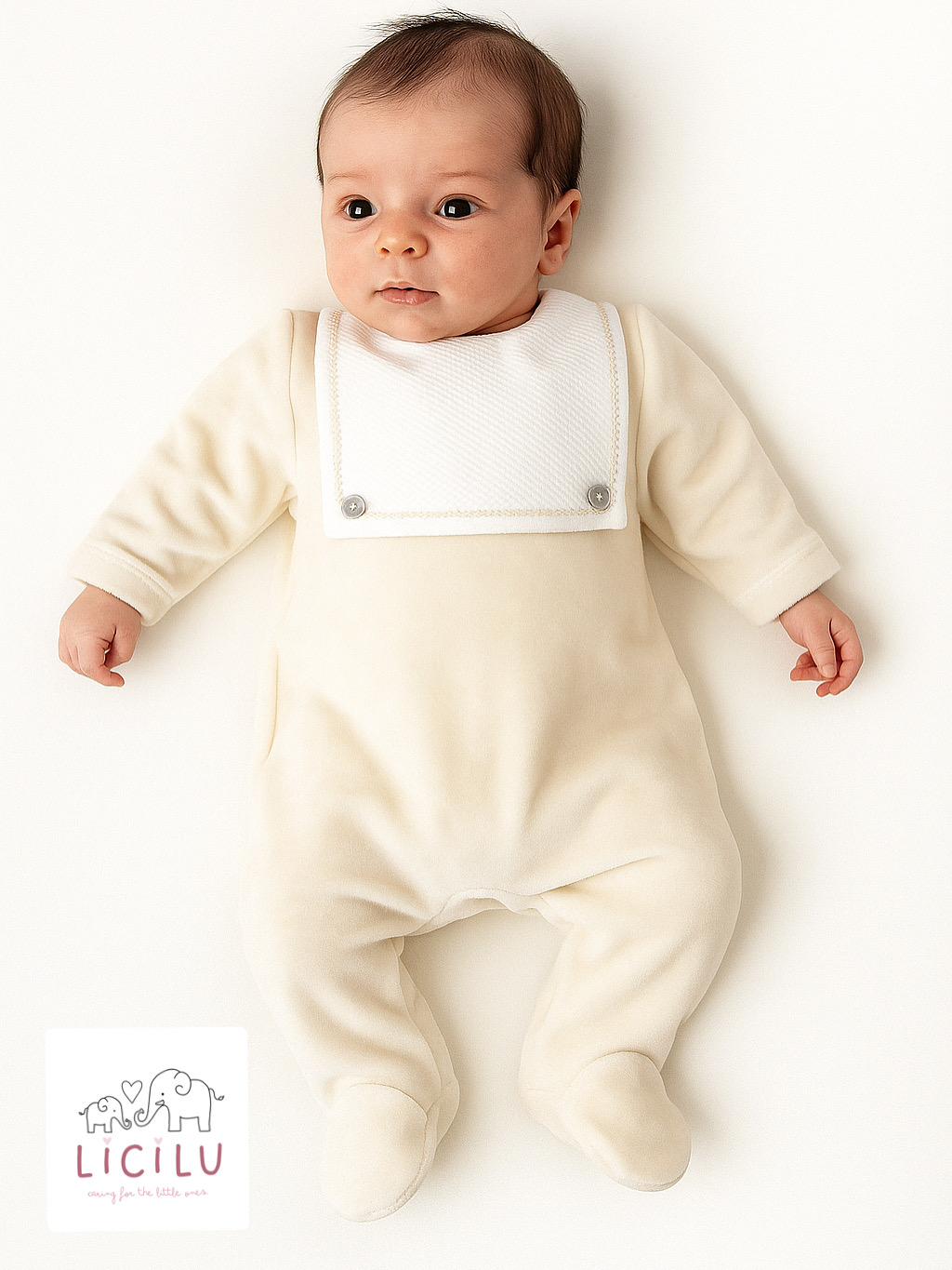 Home Babygrows Outono/Inverno Babygrow de veludo com peitilho -13.4% Babygrow de veludo com peitilho SKU: BVGP.Branco0 12,90 € 14,90 € Desconto de 13.4%. IVA incluído. O produto encontra-se sem stock. Adicionar à wishlist Outra versão da coleção de outono/inverno de babygrow de veludo (algodão laminado). Disponível em 3 cores neste modelo tão diferente e lindo! Azul, verde e branco. Decorado com botões e uma gola tipo babete á frente, eleva a fasquia dos babygrows para menino. Queremos os nossos bebés sempre confortáveis e entregamos novamente neste modelo mais atenção ao detalhe e à diferença. Abertura em baixo e nas costas. Fabricado em Portugal Material: 80% algodão 20% poliéster Nota: quaisquer produtos e/ou acessórios não descritos e que estejam incluídos na imagem, não fazem parte do produto. Partilhar