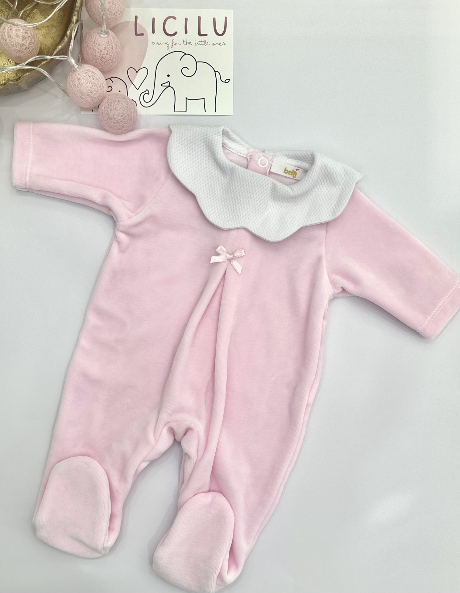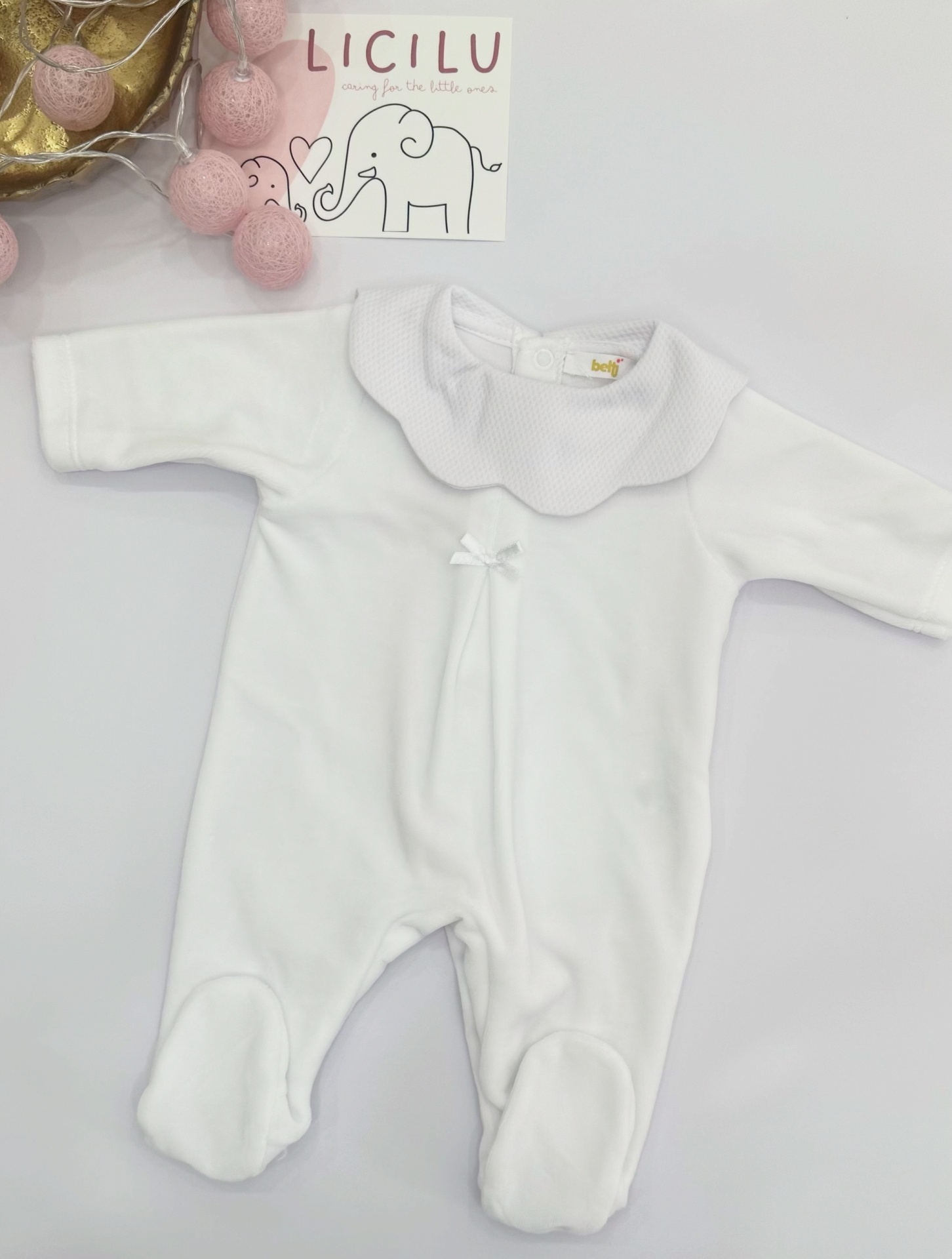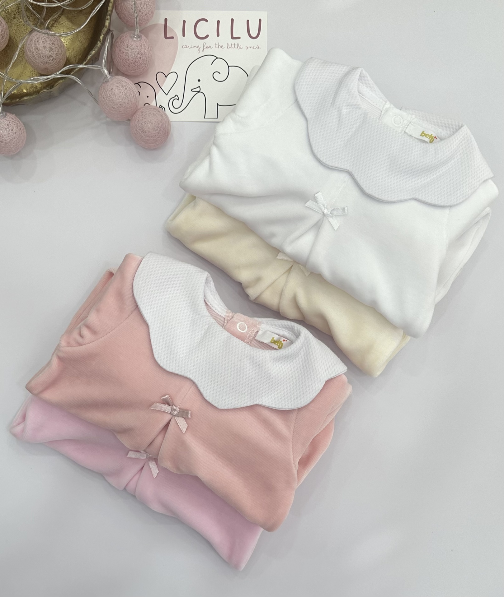 Babygrow tipo veludo (algodão laminado) da coleção outono/inverno.