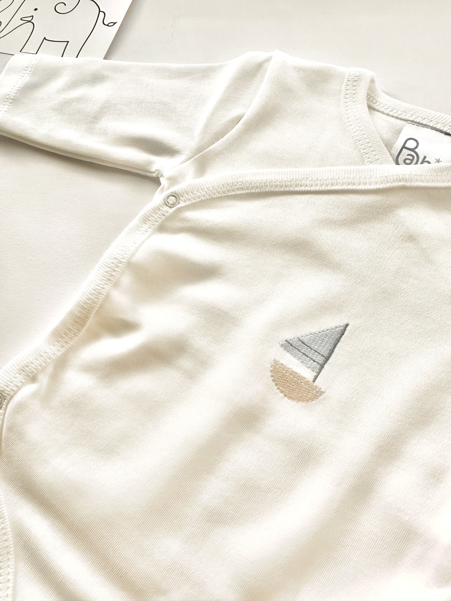 O body tem no centro um barquinho bordado.