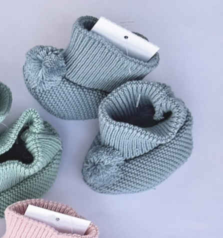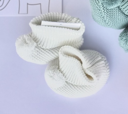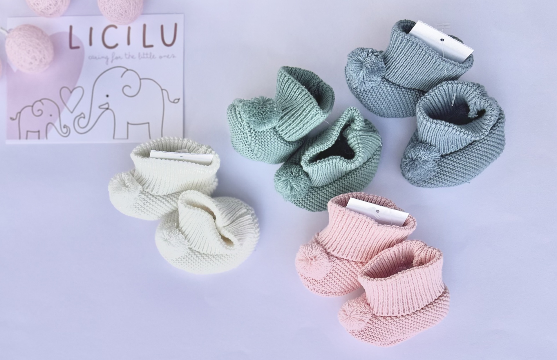 Carapins de malha decorados com pompom. Macios e certamente muito confortáveis para os pés dos nossos pequeninos.