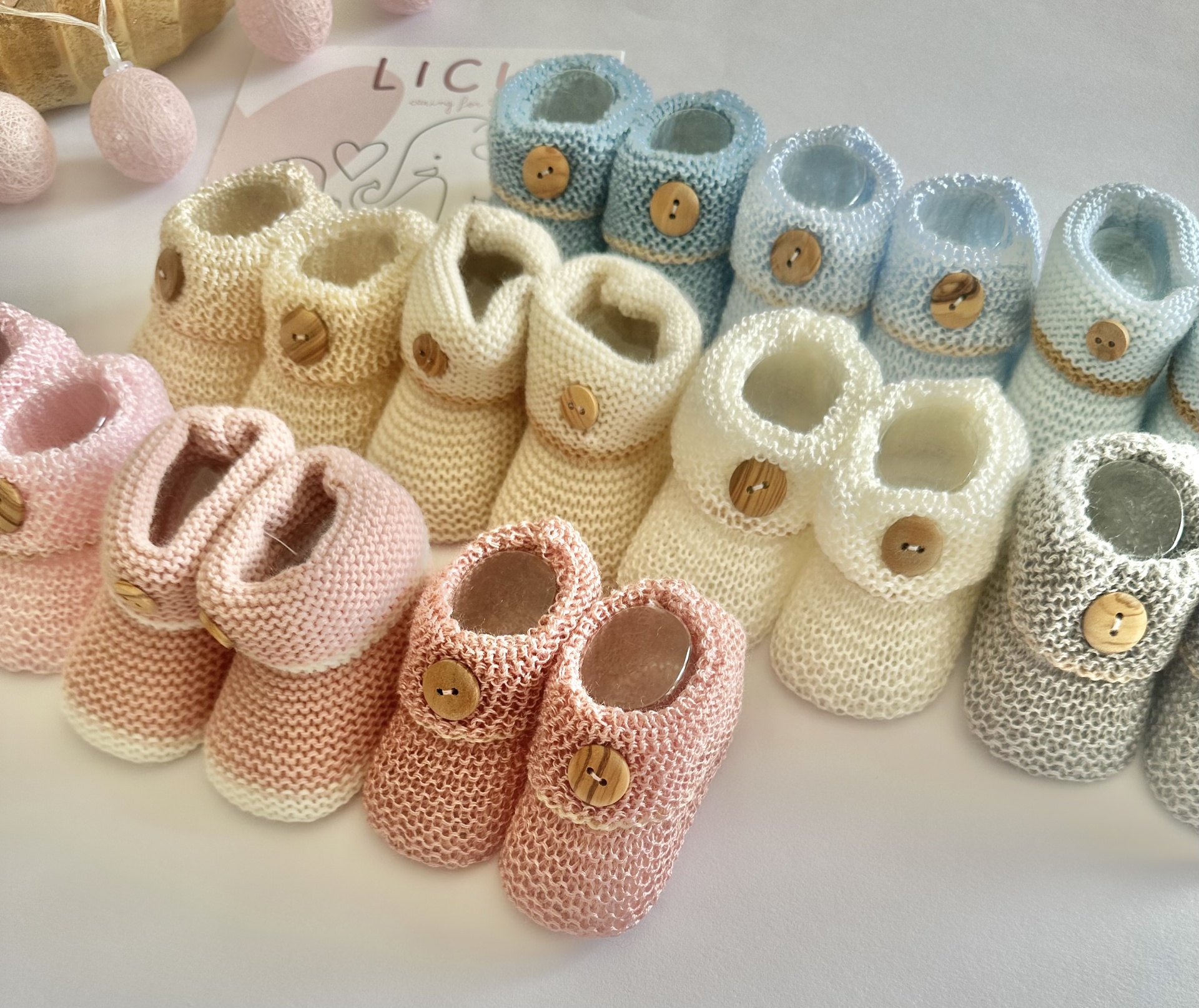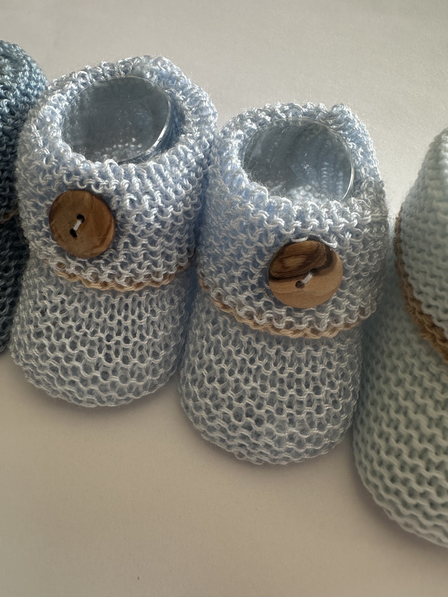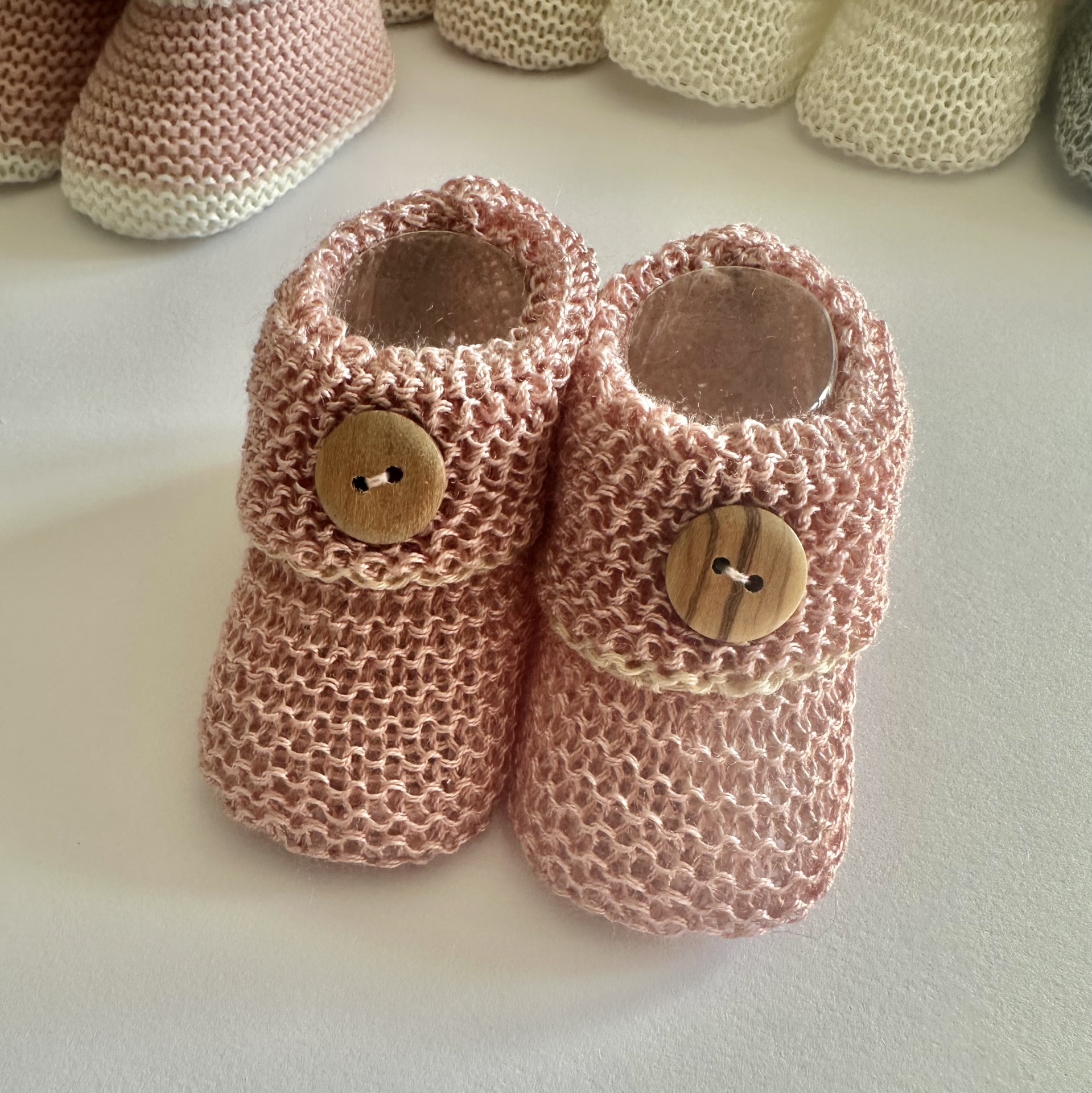 Carapins em Perlé. Várias cores, todos eles decorados com uma linha na cor areia escuro.