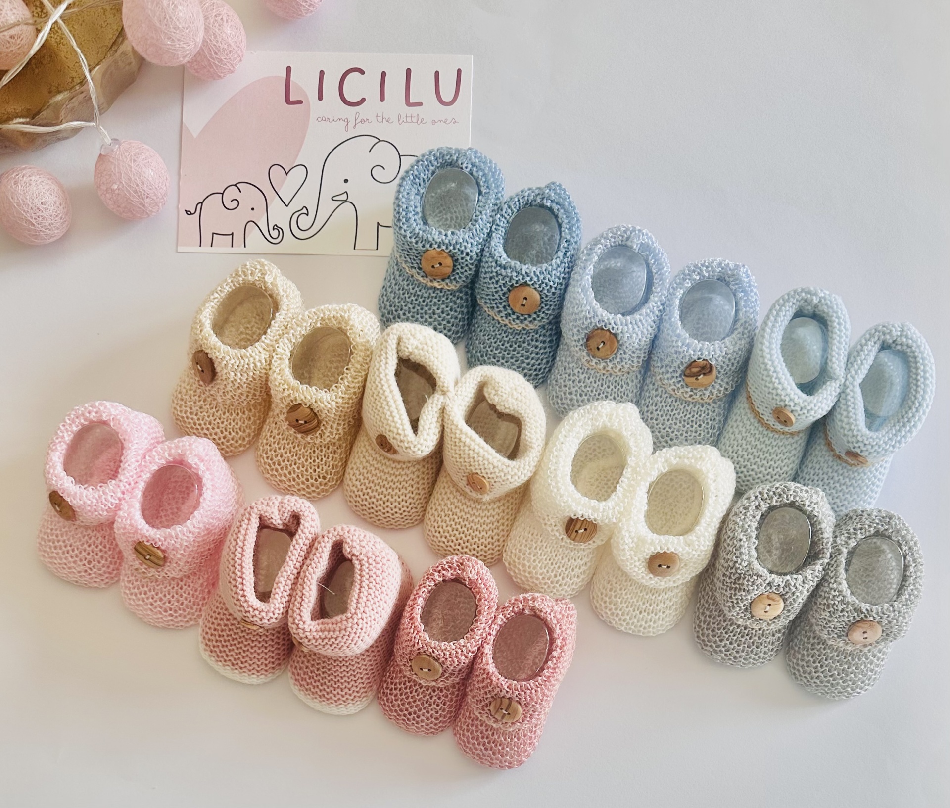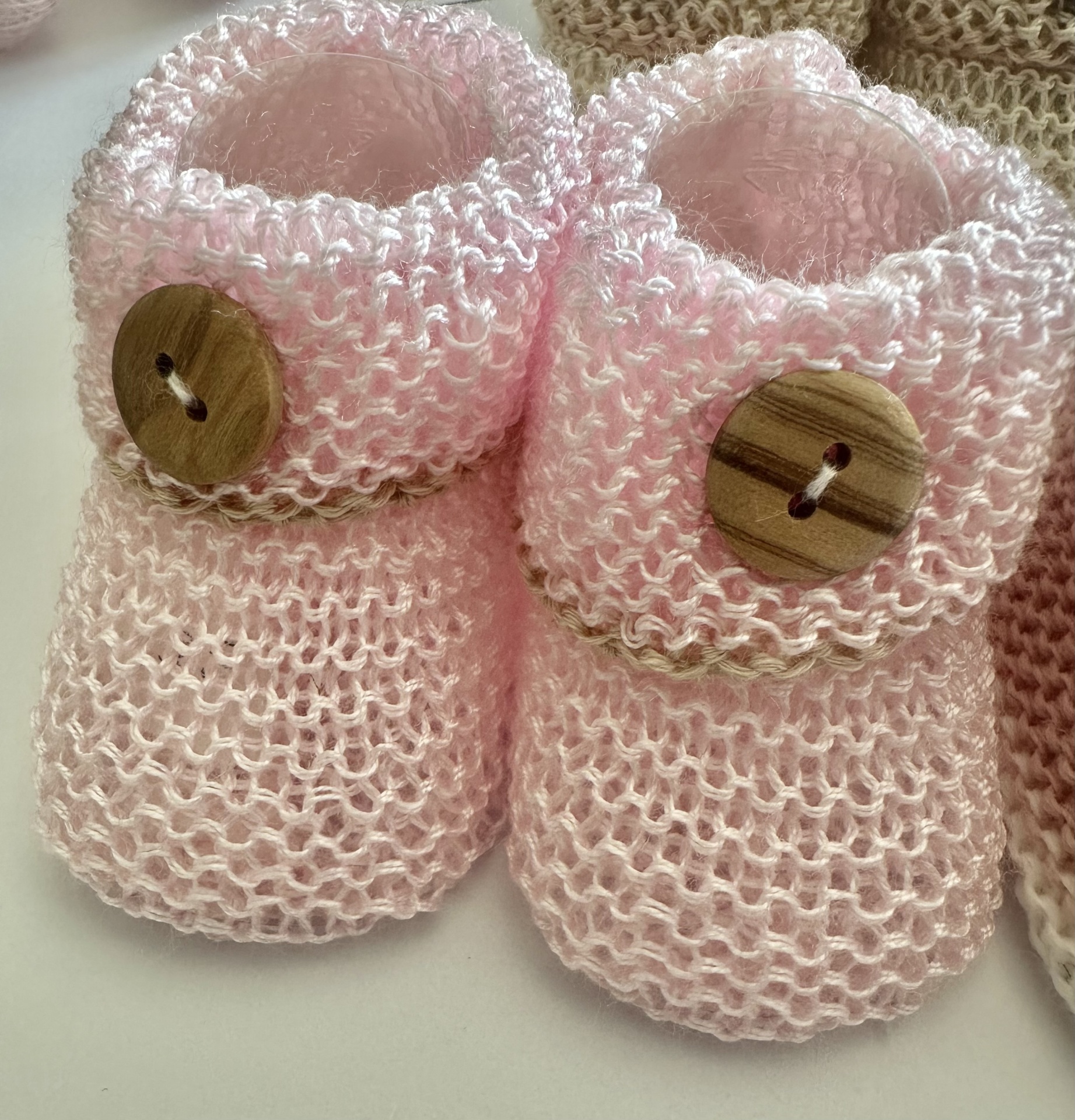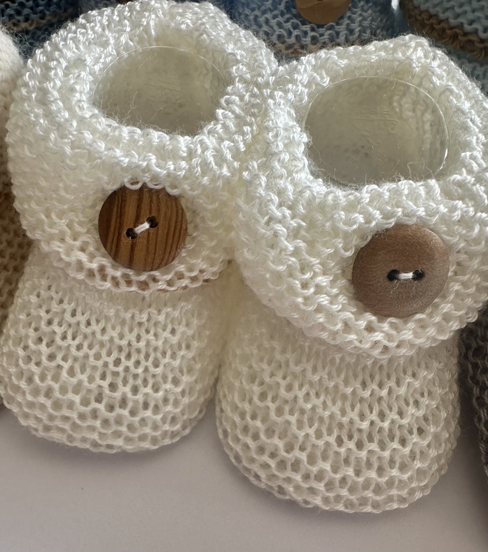 Carapins em Perlé. Várias cores, todos eles decorados com uma linha na cor areia escuro.