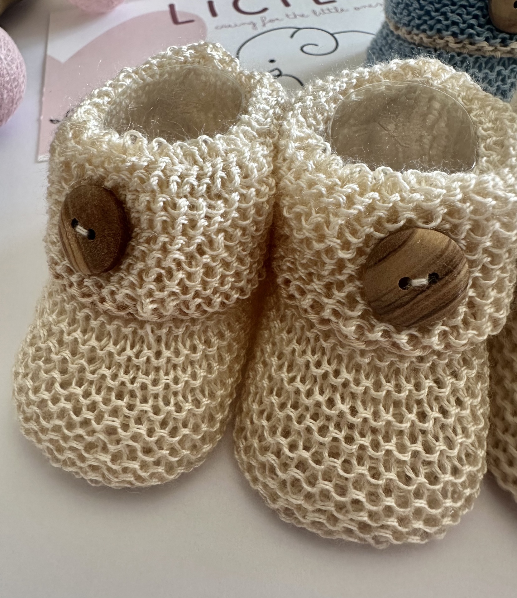 Carapins em perlé com botão amadeirado