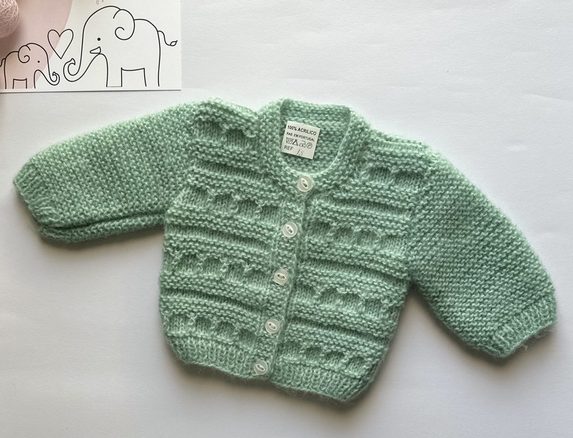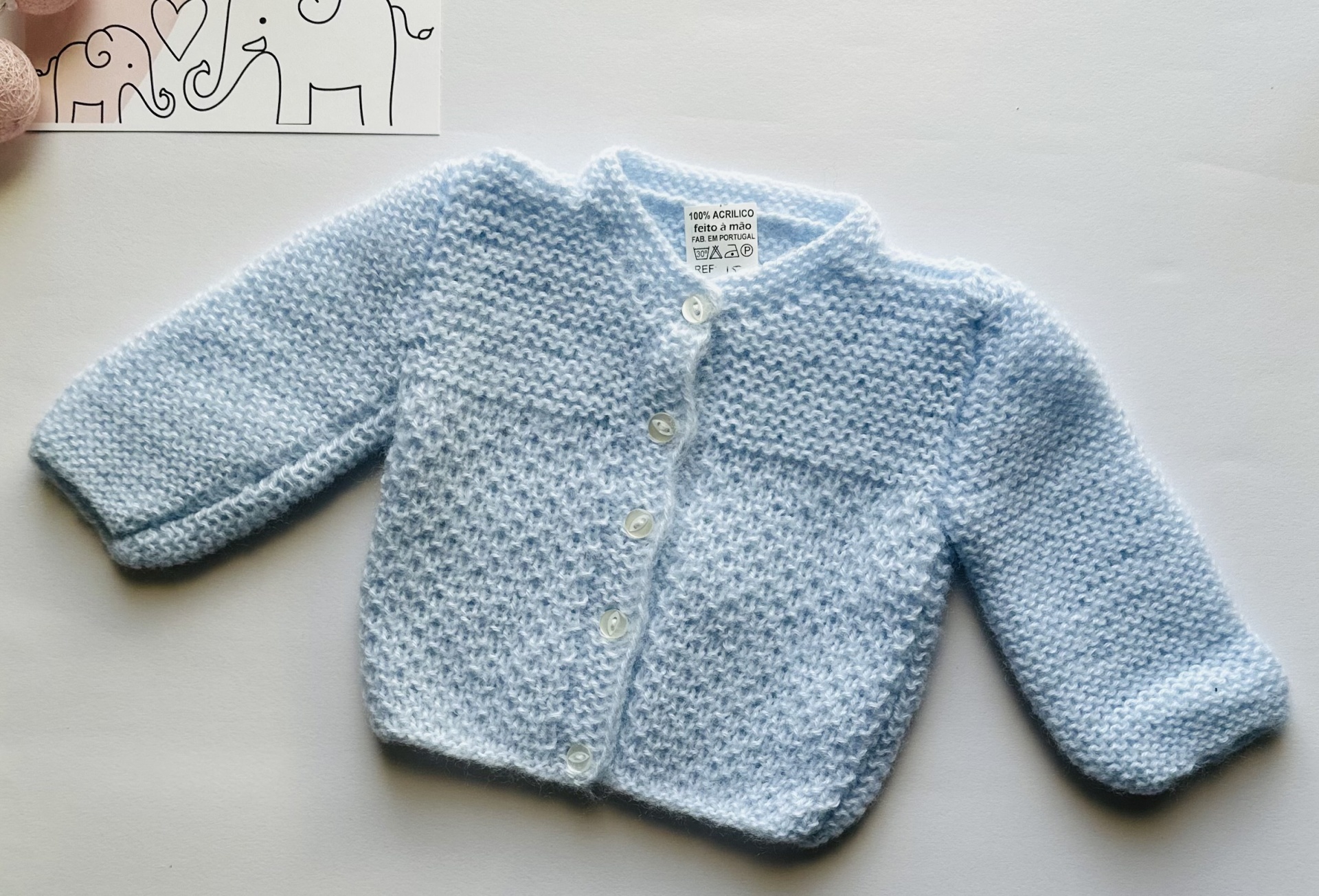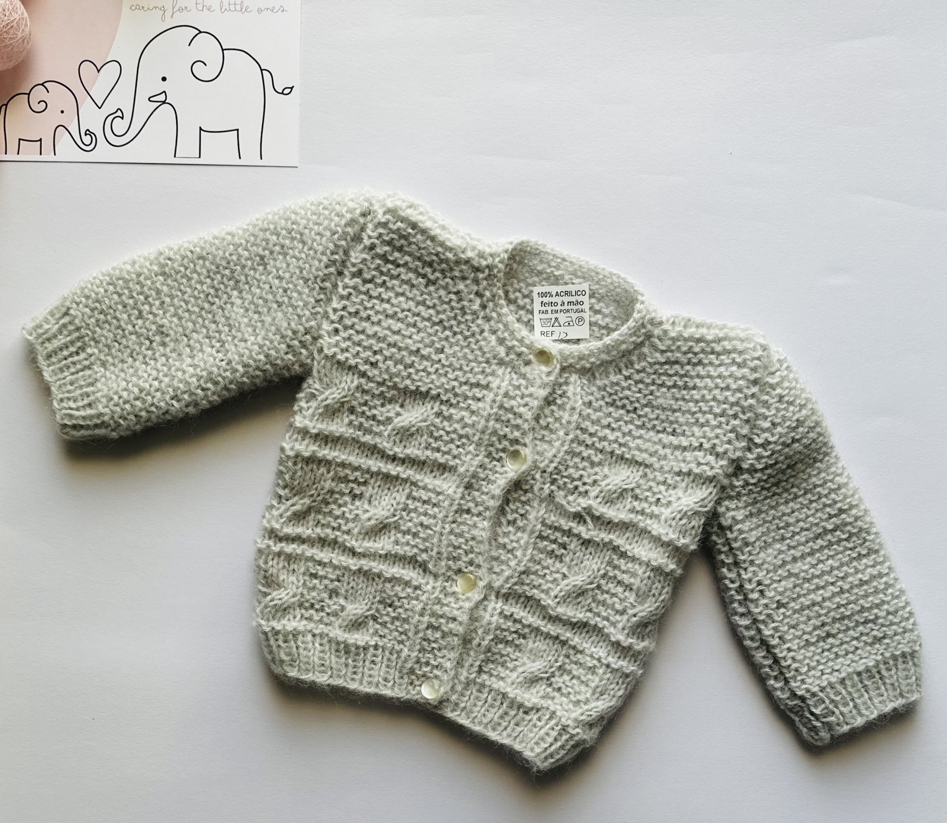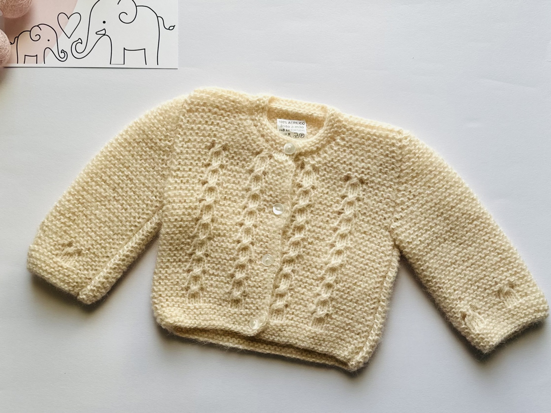 Casaco de bebé em tricot feito à mão.