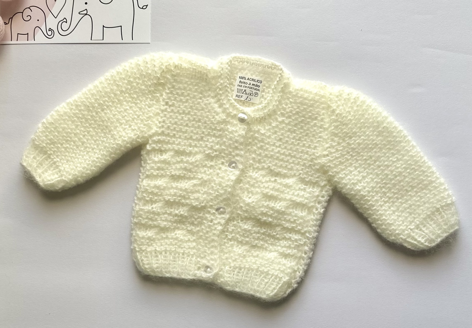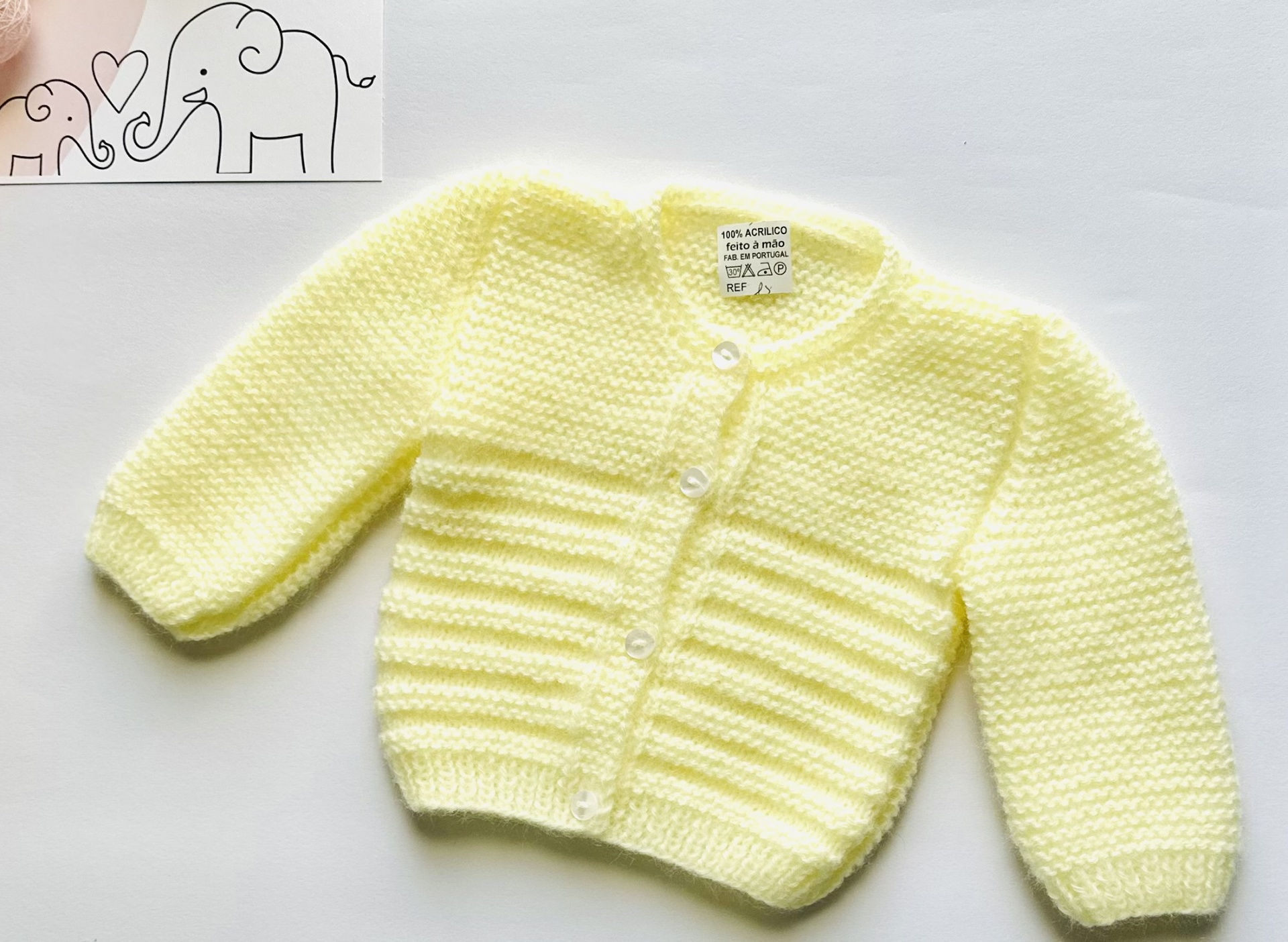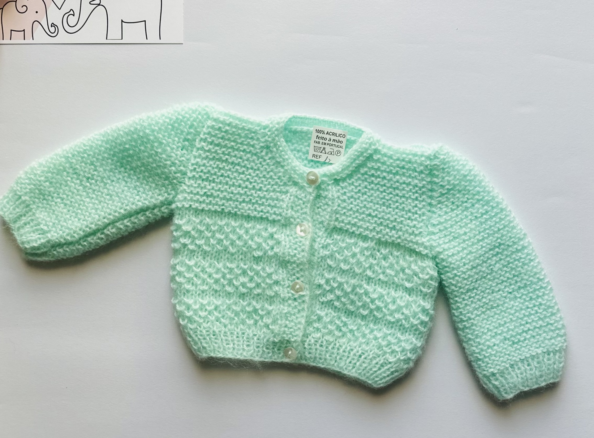 Casaco de bebé em tricot feito à mão.