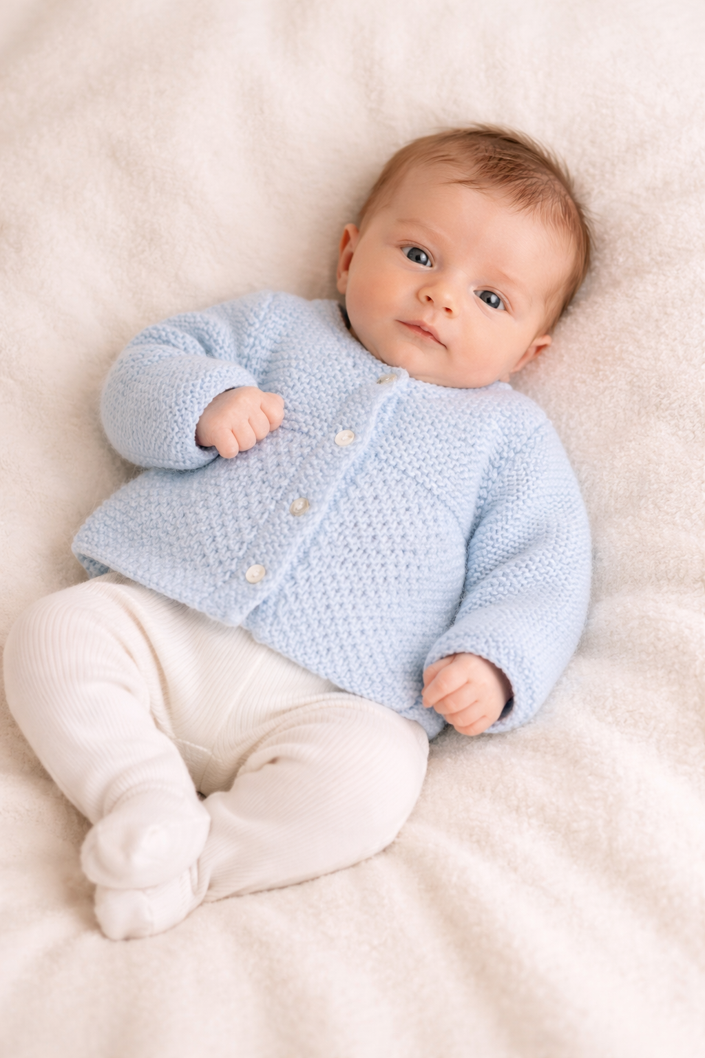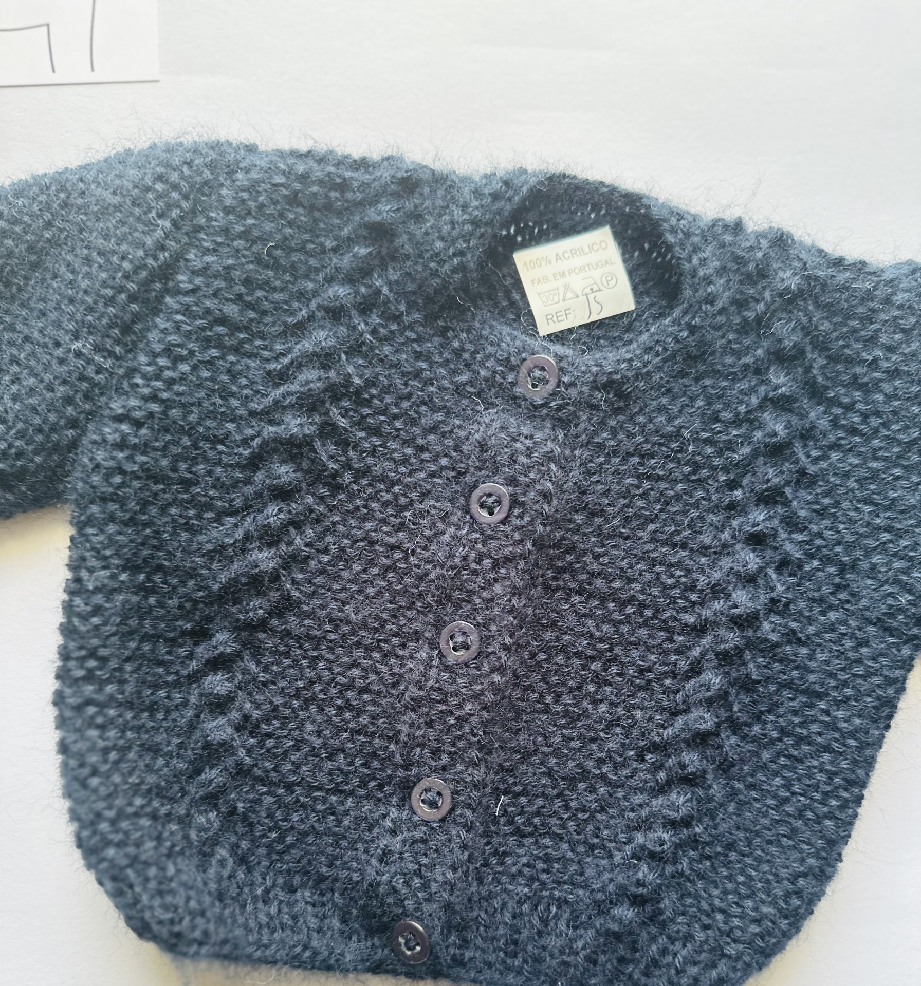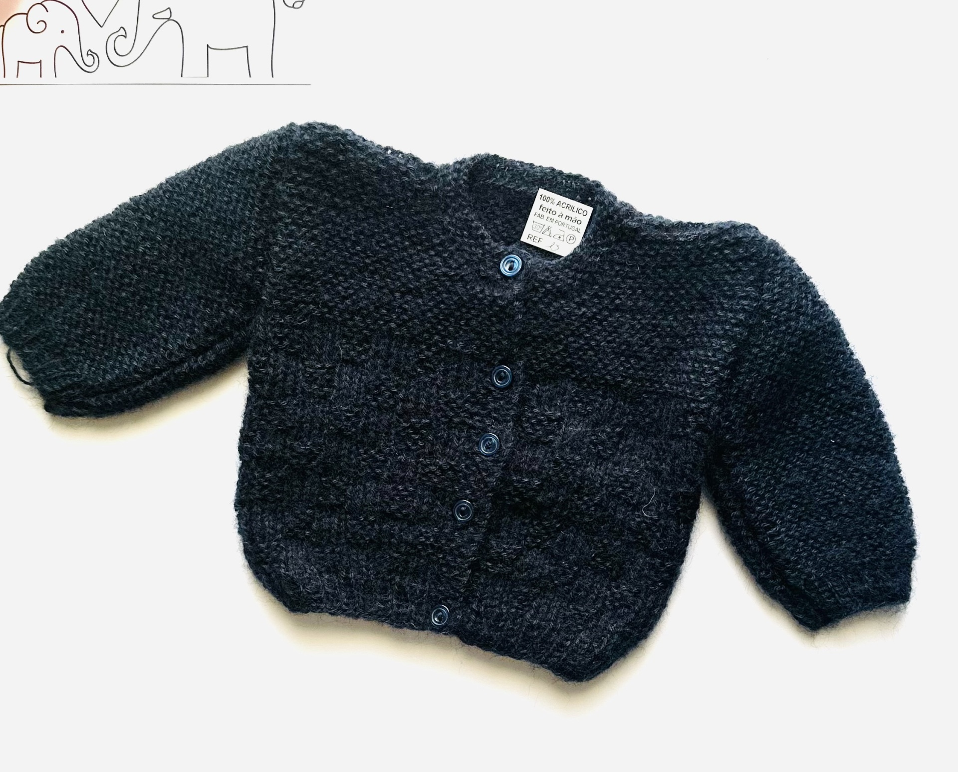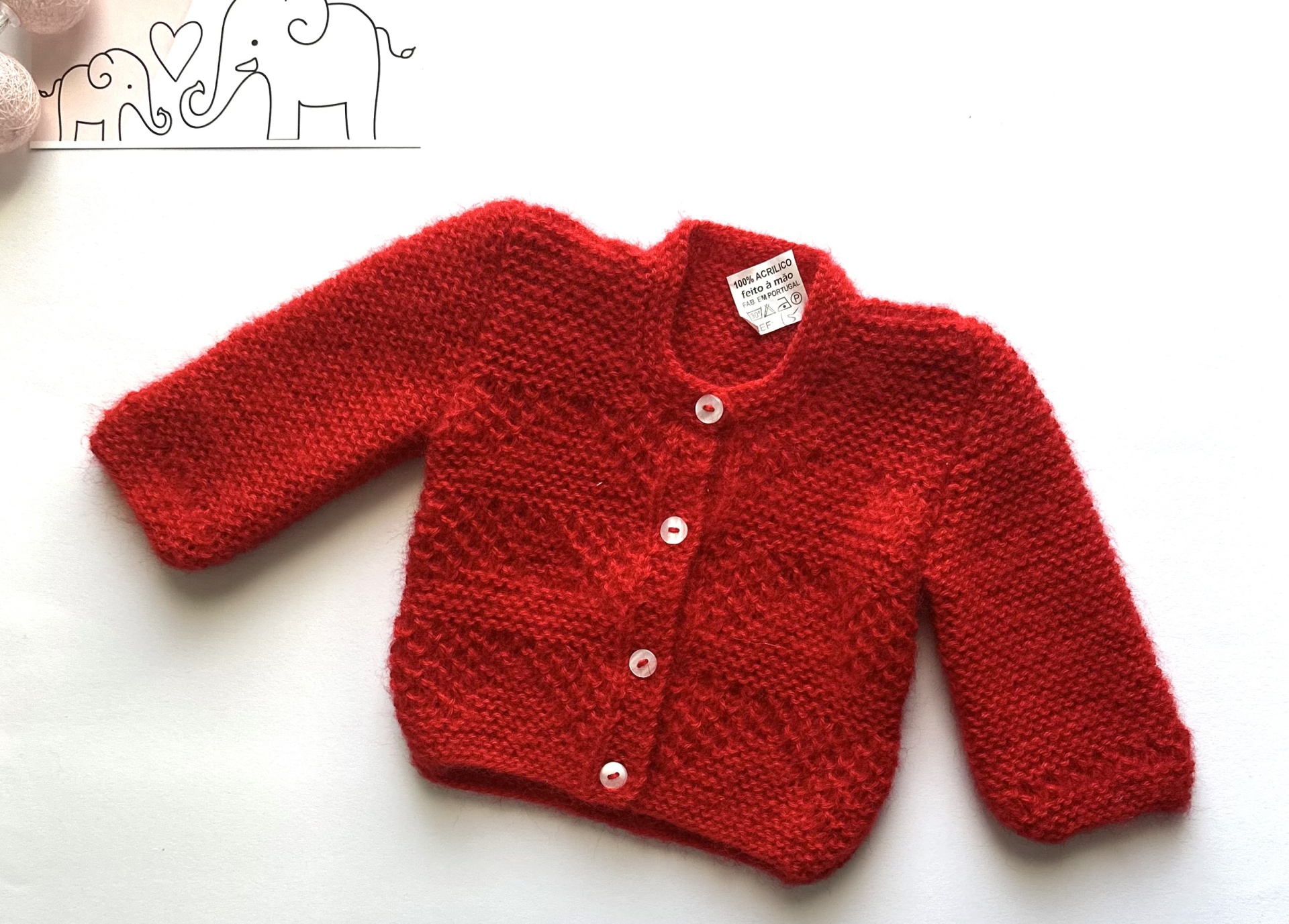 Casaco de bebé em tricot feito à mão.