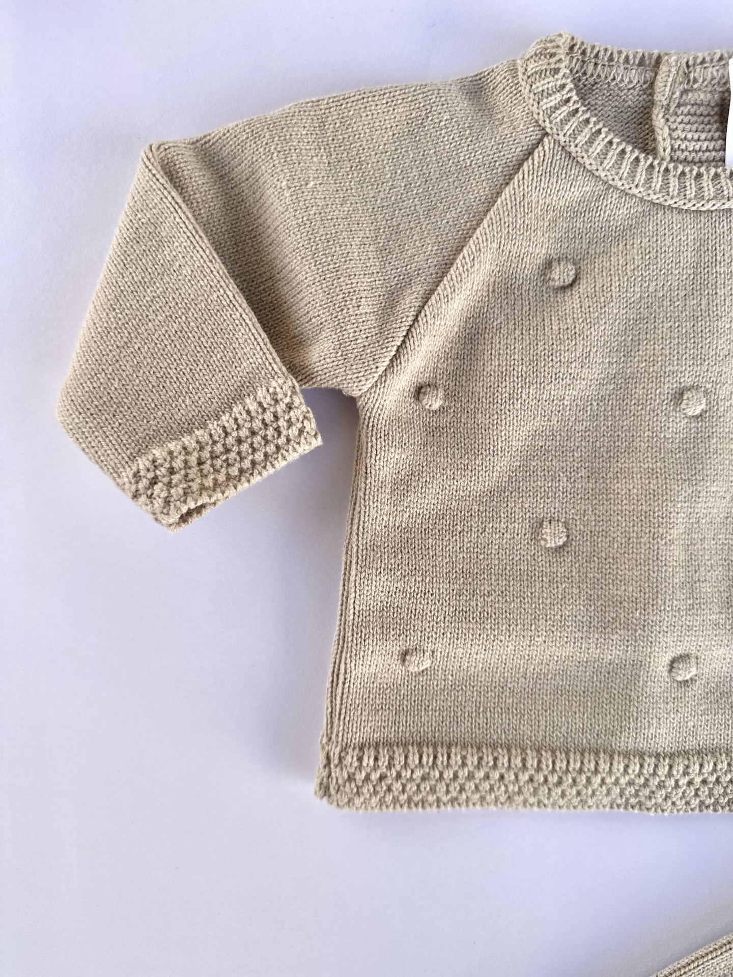 Tem a malha trabalhada com vários 'pontinhos'.