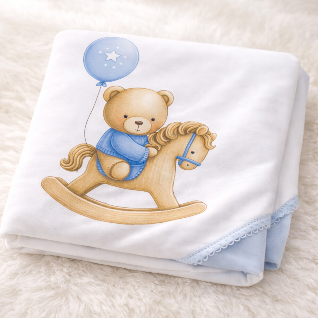 Manta decorada com motivo da coleção Urso e Cavalinho.