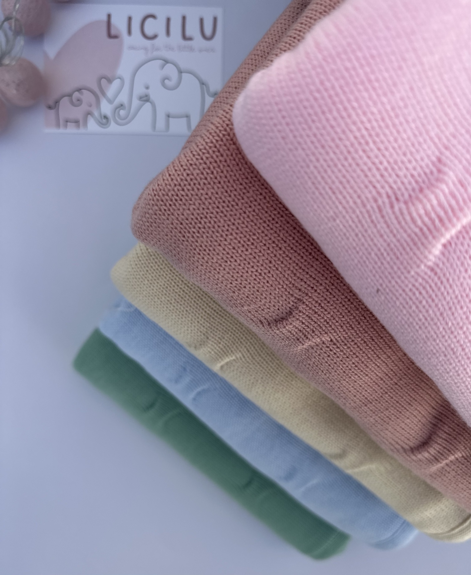 É feita em malha e é forrada, o que faz com que seja muito quentinha para os dias/noites mais frios.