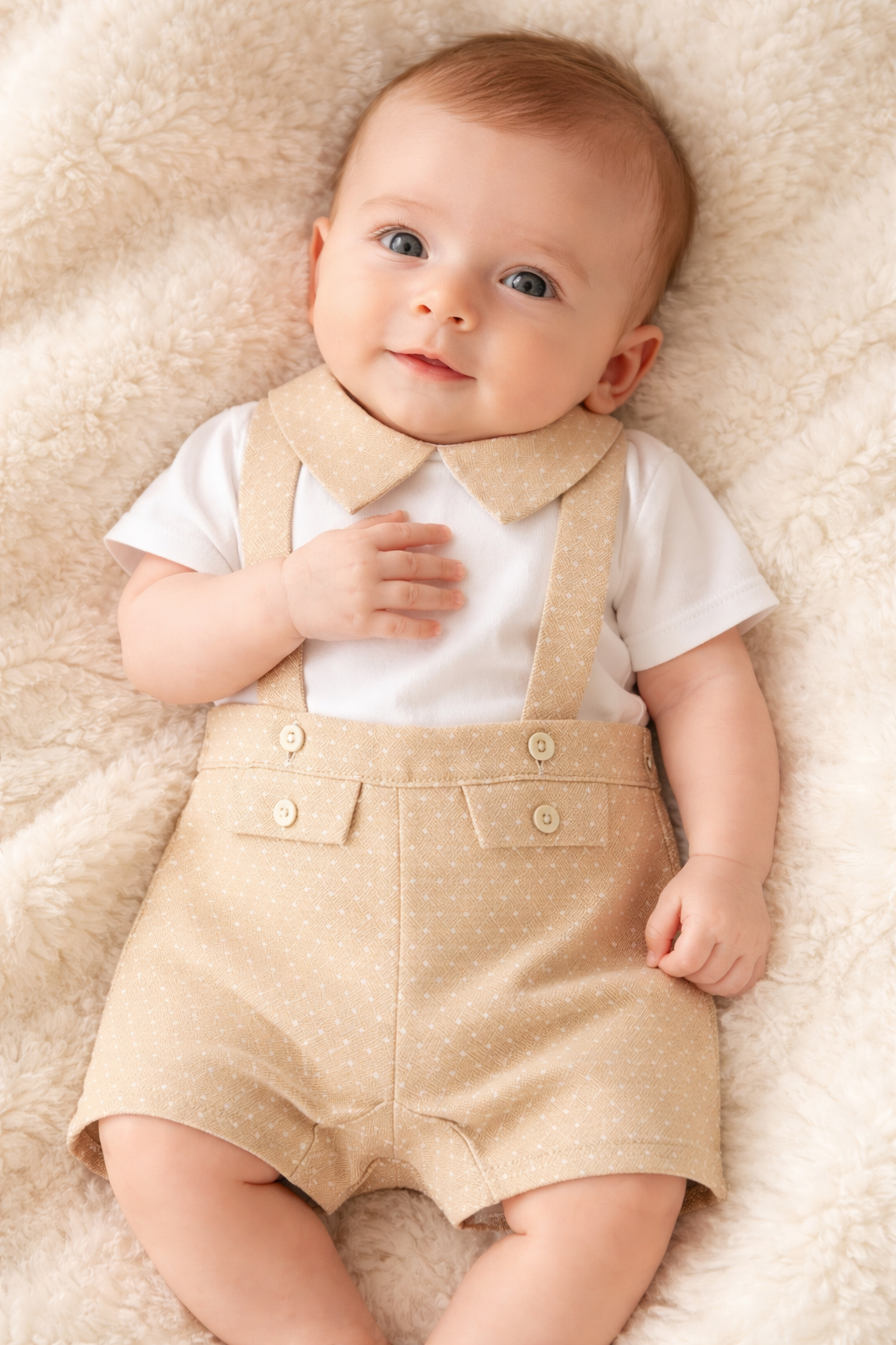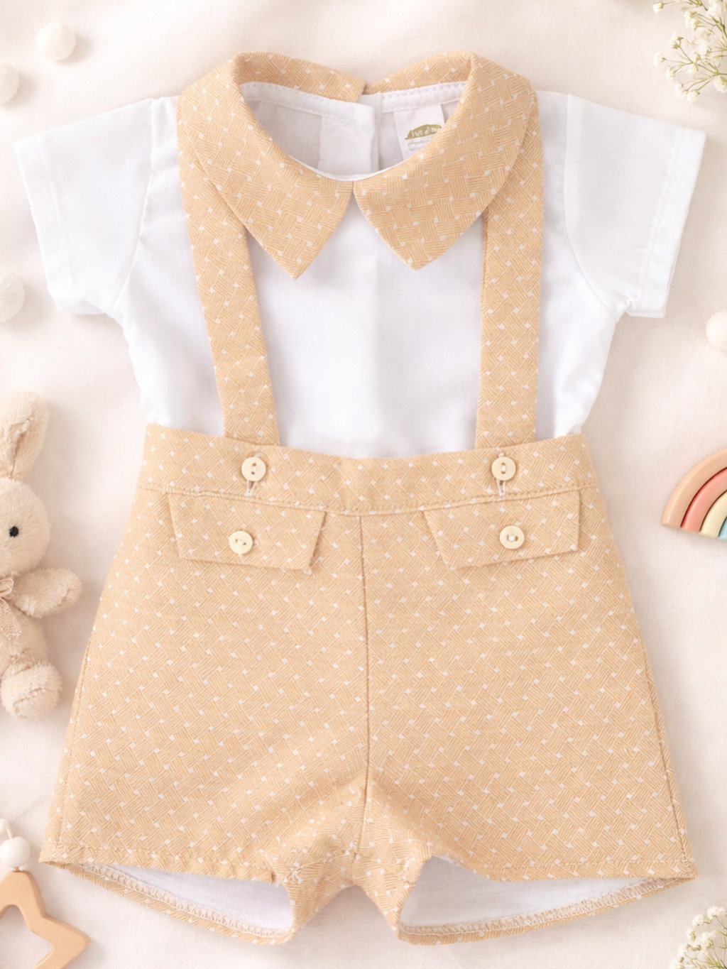 Jardineira de calção com camisola 'pontinhos' - Camel